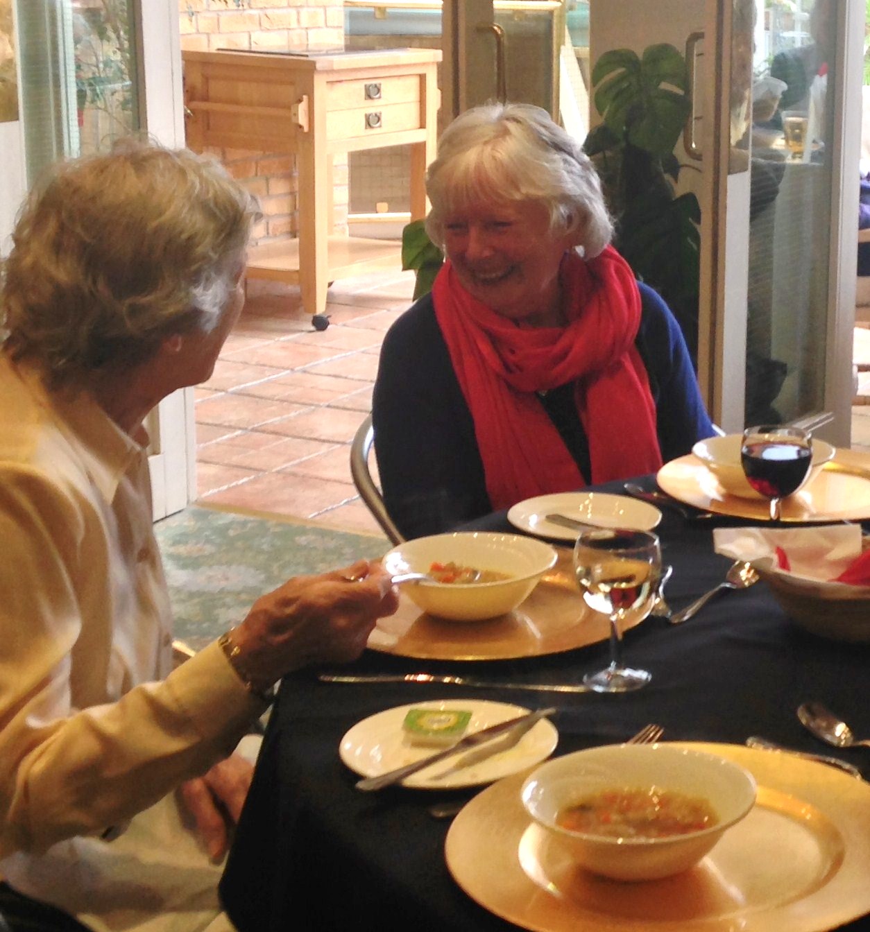 Enjoying lunch with a guest