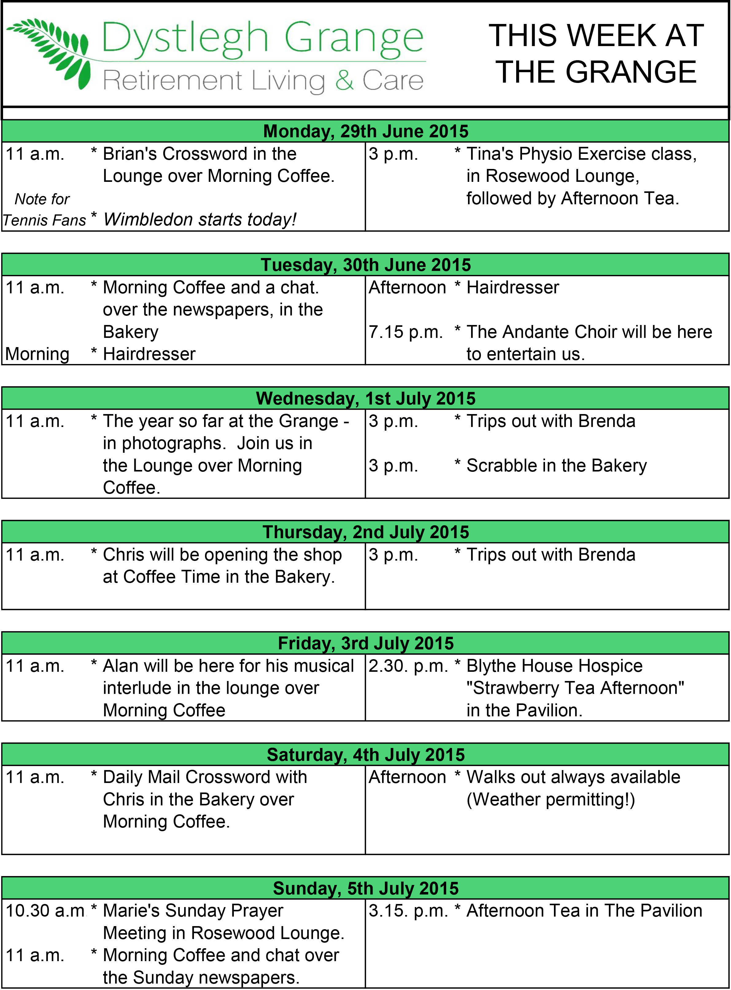THIS WEEK AT THE GRANGE (29.6.2015) WEBSITE VERSION