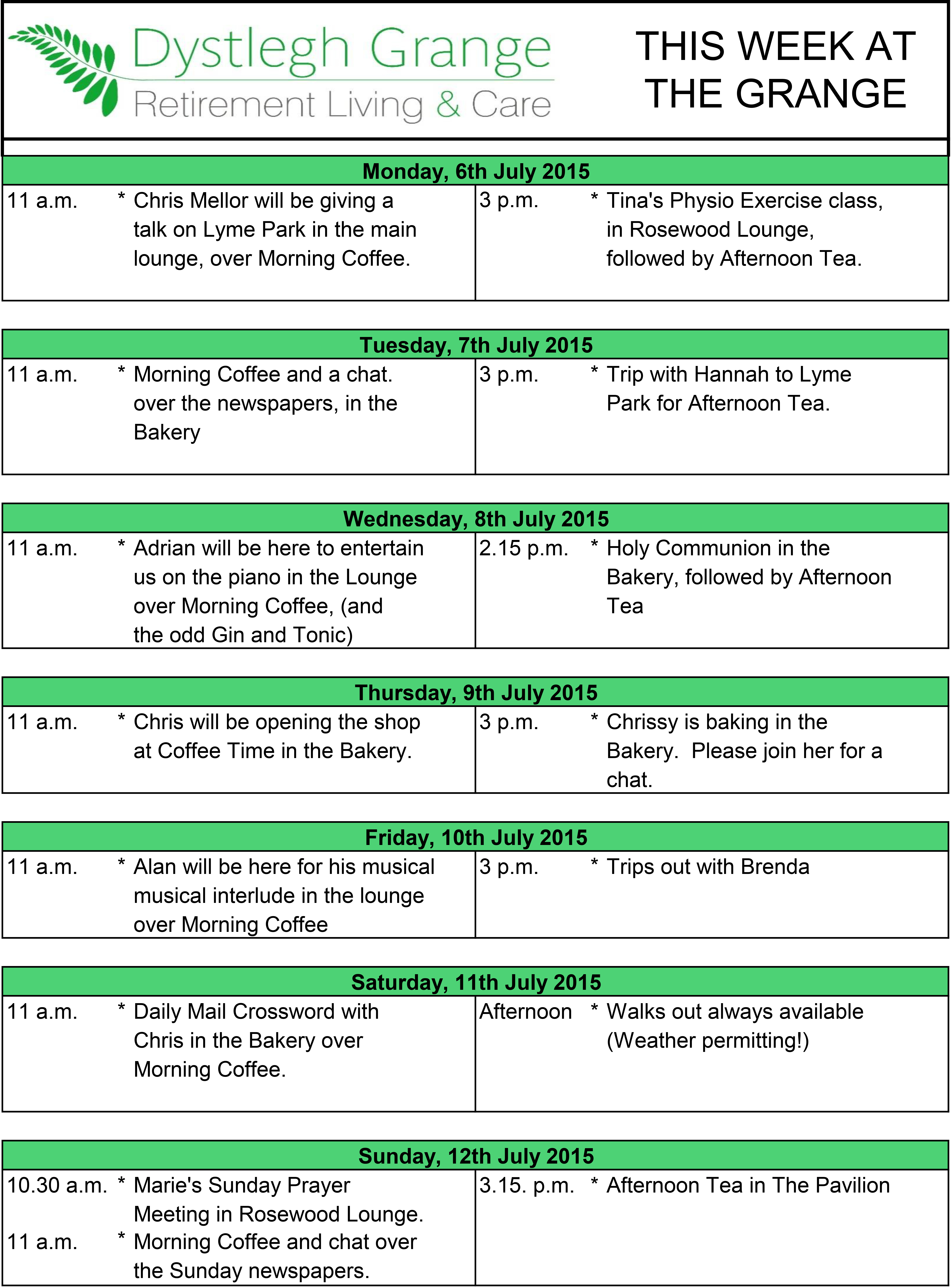 THIS WEEK AT THE GRANGE (29.6.2015) WEBSITE VERSION